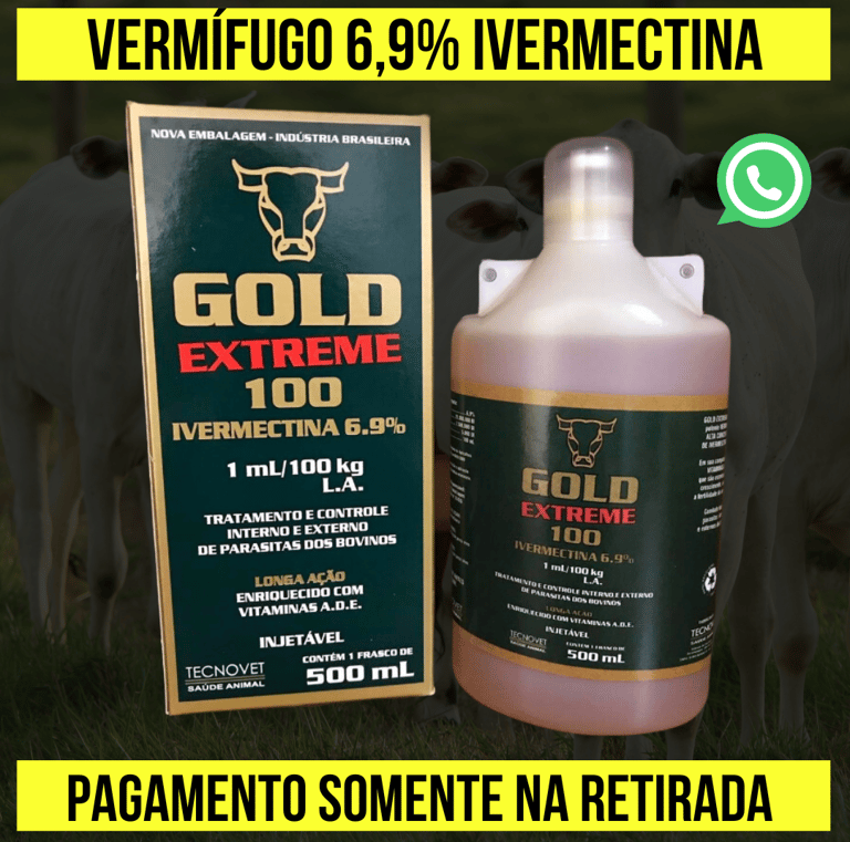 GOLD EXTREME: A ivermectina vem demonstrando ser o medicamento mais eficaz contra parasitas internos e externos dos bovinos, pois atua rapidamente sobre os parasitas gastrintestinais e pulmonares, tanto em sua forma adulta como em larvas, permanecendo ativo na matéria fecal, evitando o cliclo parasitário.